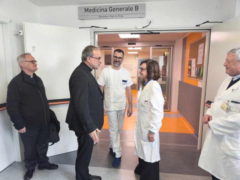 Visita ai malati Medicina interna B. Come sempre quando viene in ospedale, monsignor Pompili ha voluto portare i suoi saluti ai malati. È stato accolto nel reparto di Medicina interna B, diretto dalla prof.ssa Simonetta Friso, che ha pazienti sia giovani o molto giovani fino a persone di età anziane, anche i cosiddetti “grandi anziani”. Sono persone con malattie complesse, malattie rare nell’ambito ematologico non oncologico (trombosi, trombofilia, malattie immunologiche), oltre a pazienti che accedono attraverso il Pronto soccorso. Attivi anche l’ambulatorio e il Day service per le malattie rare.