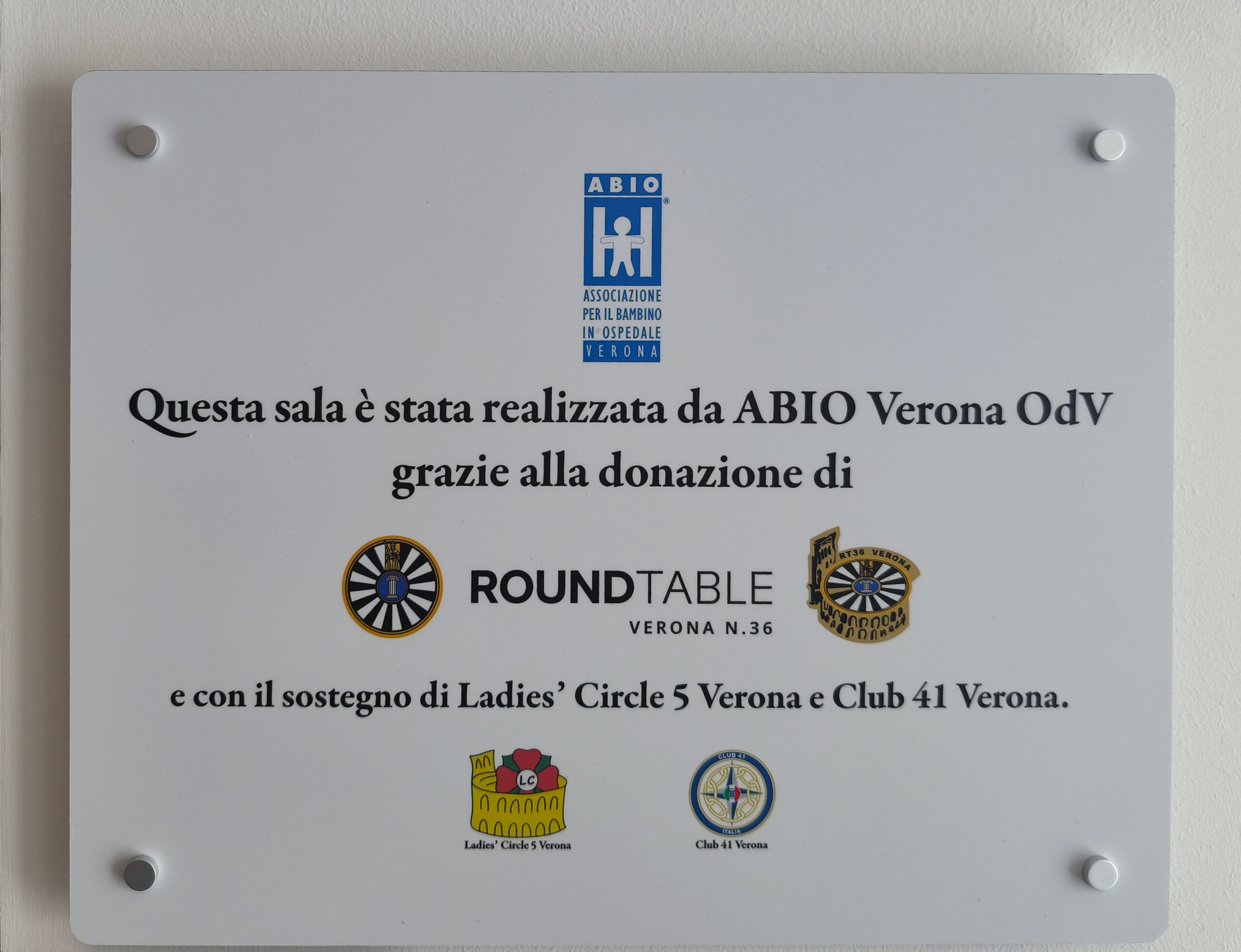 La donazione Abio Verona. La realizzazione è avvenuta grazie all’impegno dell’associazione Abio Verona, che si è impegnata nella raccolta fondi a cui hanno contribuito Round Table Verona 36, Ladies Circle Verona 5 e Club 41. Le tre realtà associative hanno raccolto 40 mila euro attraverso la vendita a soci e amici dei pandori natalizi.