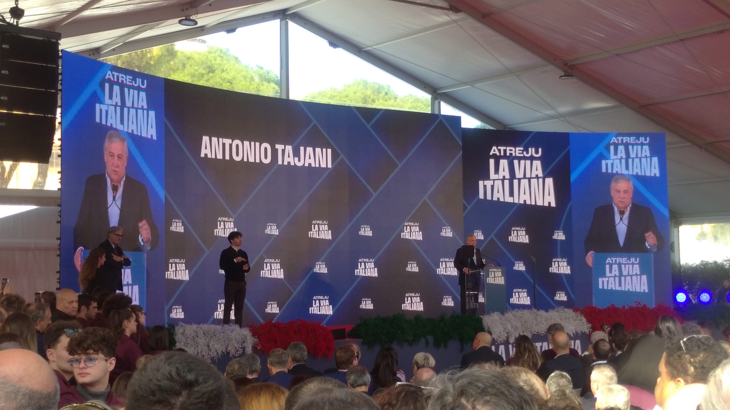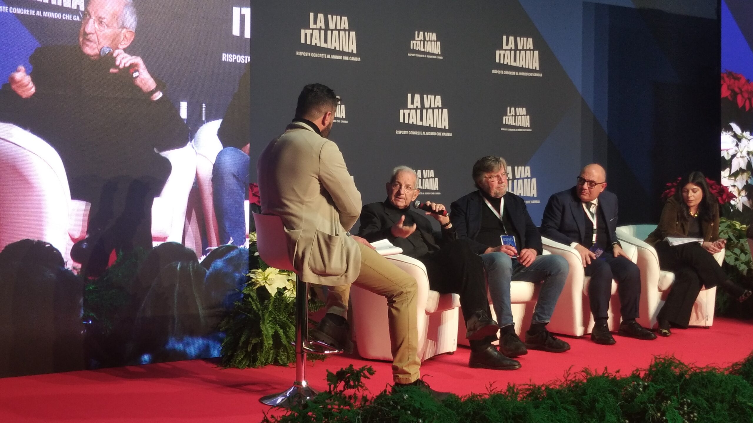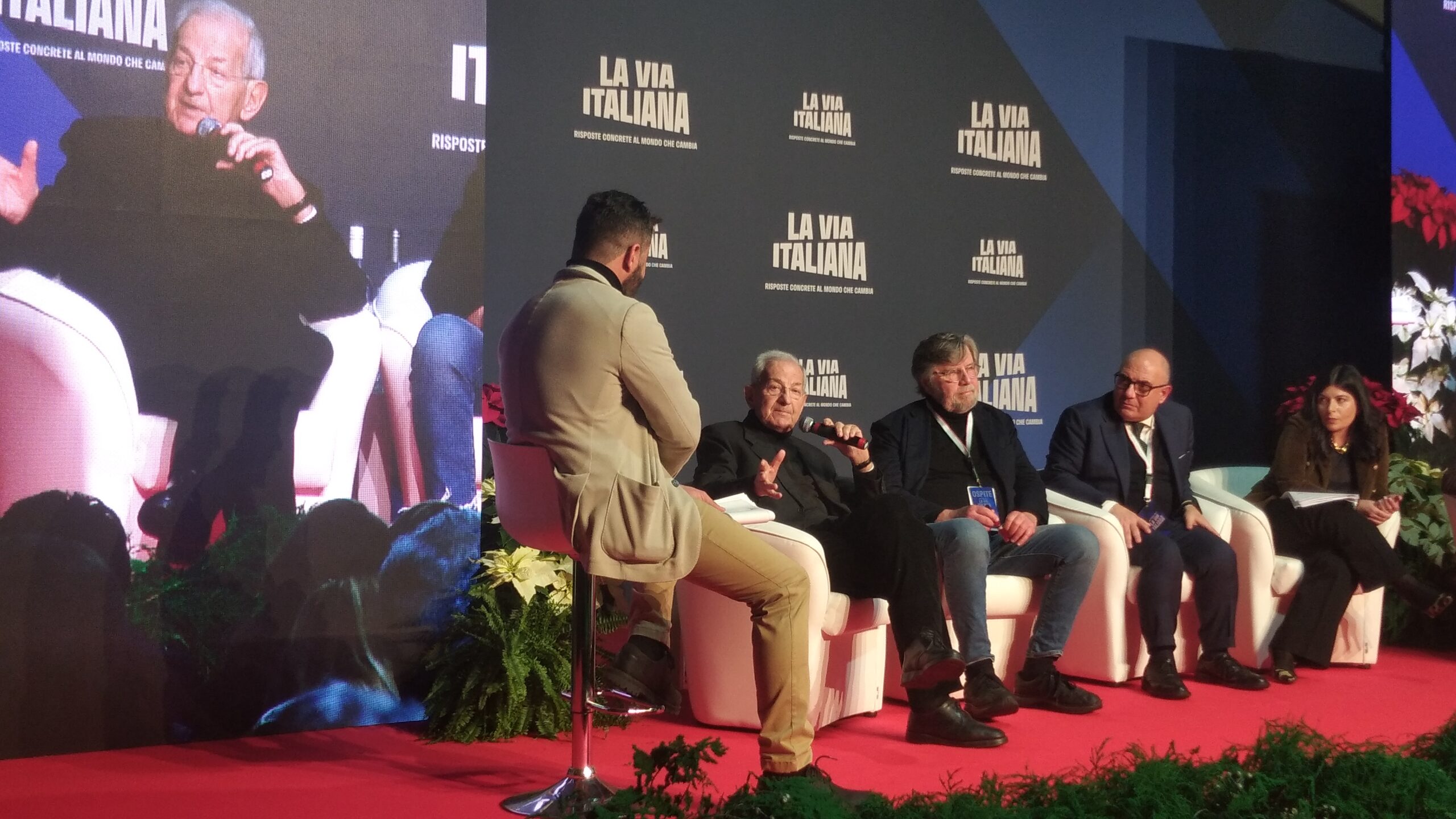 In Sala “Cristoforo Colombo” Raffaele Fitto ed Enrico Letta (questi da remoto, ex premier, ex leader del Partito democratico ed ora pure ex deputato in quanto dimissionario) sono stati intervistati dal giornalista Bruno Vespa. Con acclamazione conclusiva, da parte soprattutto degli aderenti a Gioventù Nazionale, di Fitto, fresco vicepresidente esecutivo della Commissione europea e Commissario europeo per la Politica regionale e di coesione, lo Sviluppo regionale, le Città e le Riforme nella Commissione von der Leyen II dal 1° dicembre 2024.