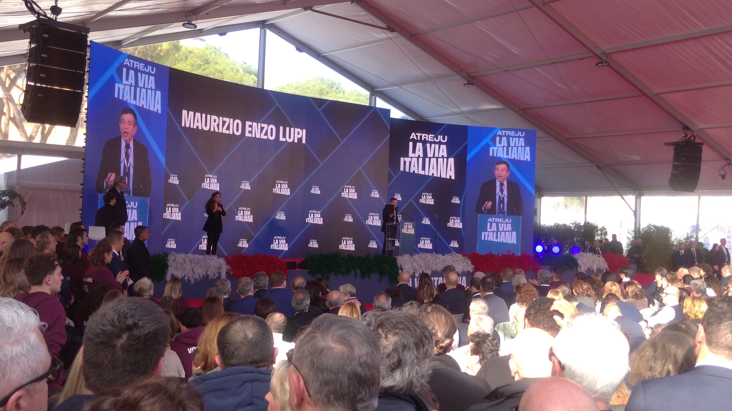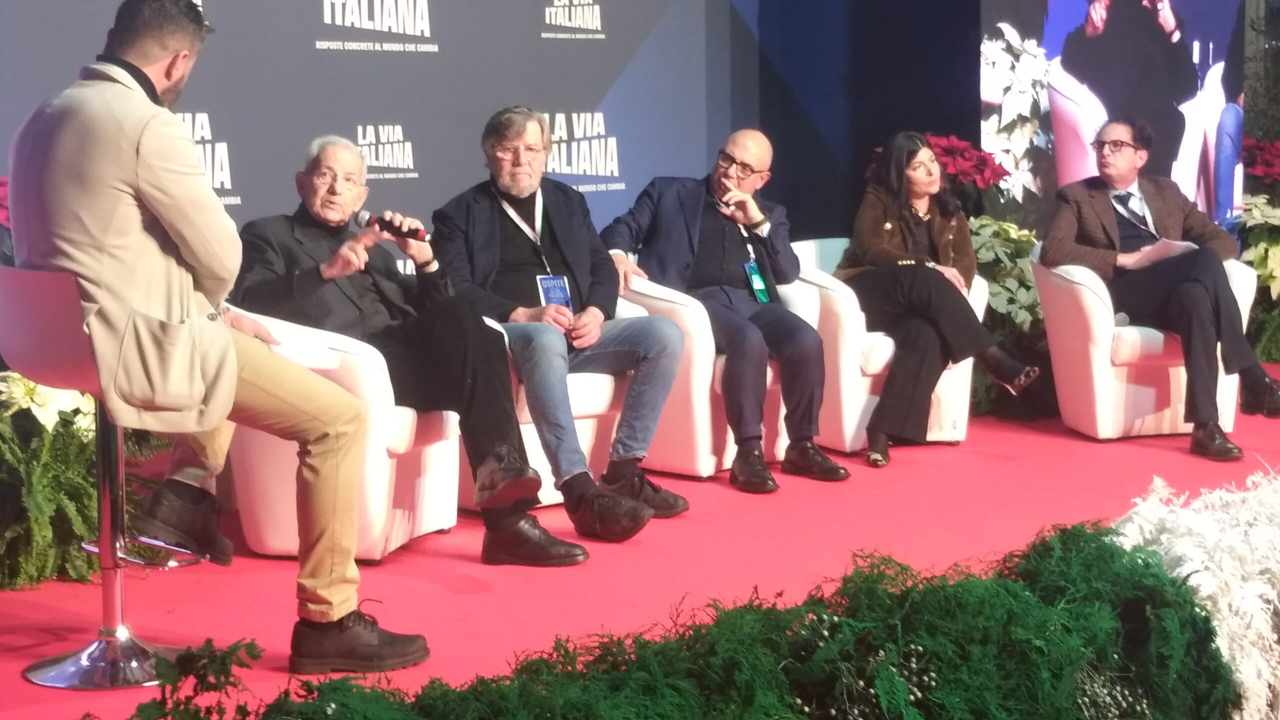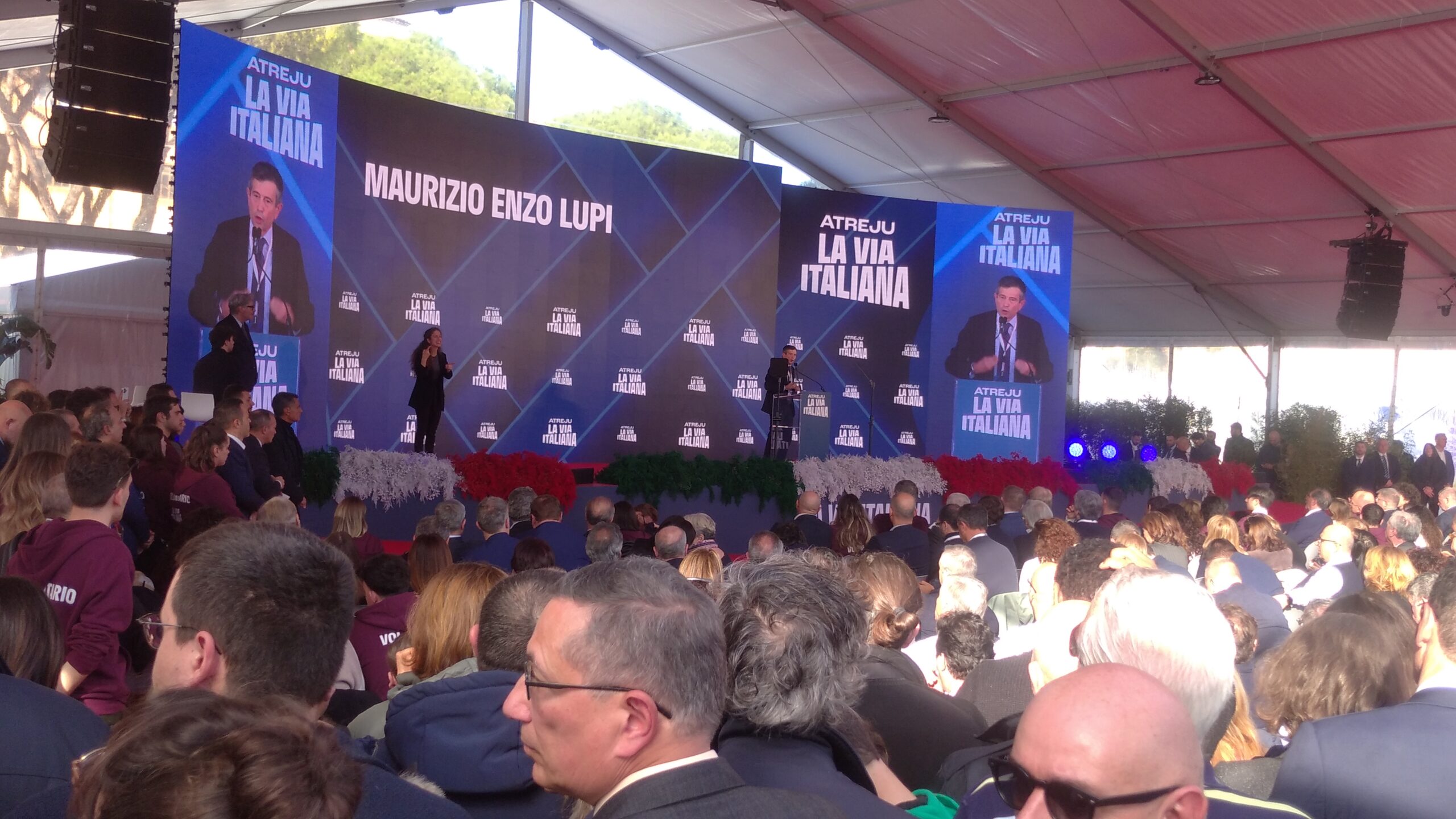 In Sala “Cristoforo Colombo” Raffaele Fitto ed Enrico Letta (questi da remoto, ex premier, ex leader del Partito democratico ed ora pure ex deputato in quanto dimissionario) sono stati intervistati dal giornalista Bruno Vespa. Con acclamazione conclusiva, da parte soprattutto degli aderenti a Gioventù Nazionale, di Fitto, fresco vicepresidente esecutivo della Commissione europea e Commissario europeo per la Politica regionale e di coesione, lo Sviluppo regionale, le Città e le Riforme nella Commissione von der Leyen II dal 1° dicembre 2024.