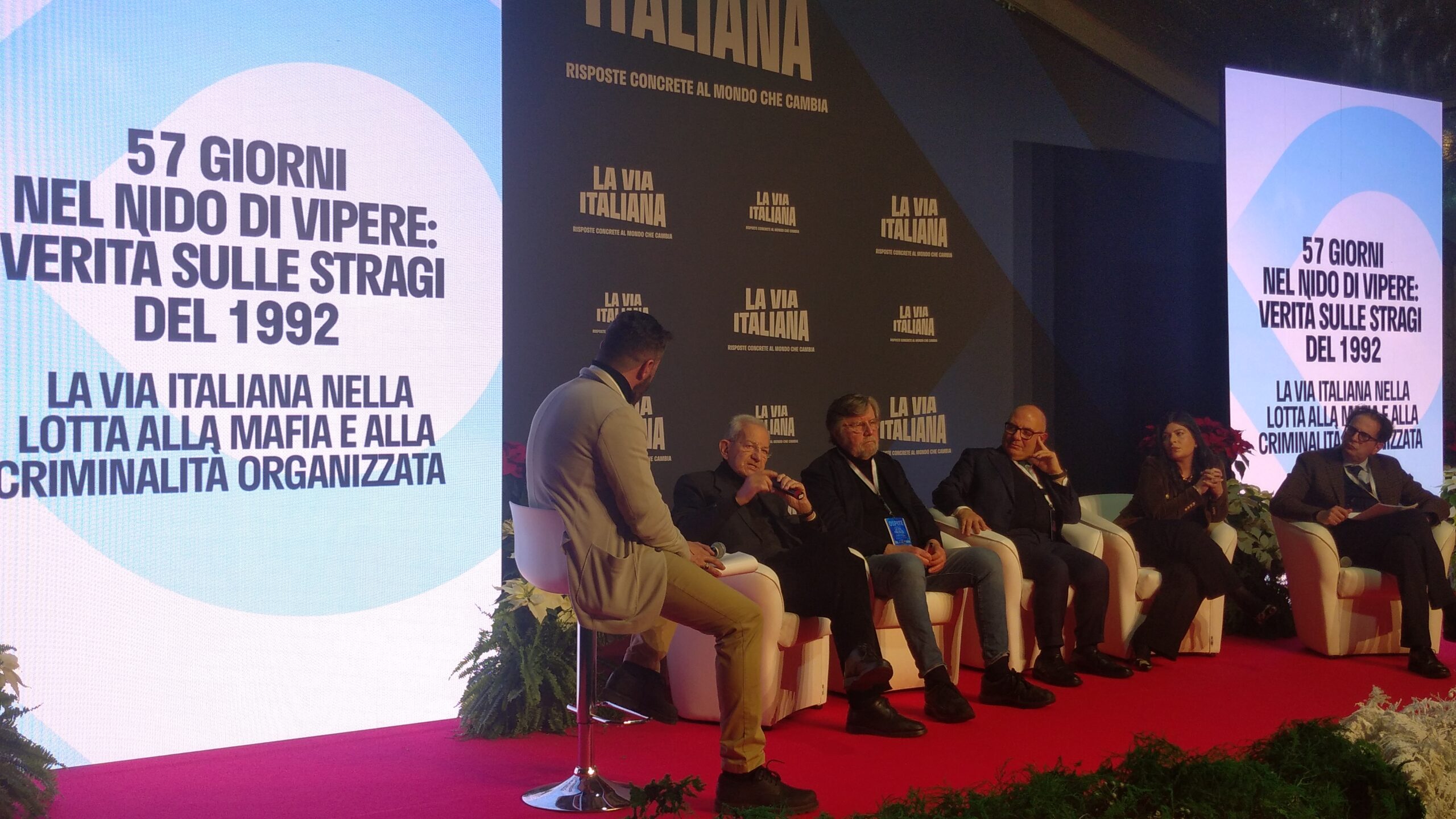 Un altro tema scottante dell’Italia delle cosche, dei silenzi, dei depistaggi, della vera giustizia infangata ed angariata dalla “giustizia di comodo” è stato quello discusso in Sala “Marco Polo”: “57 giorni nel nido di vipere: verità sulle stragi del 1992. La via italiana nella lotta alla mafia e alla criminalità organizzata”.