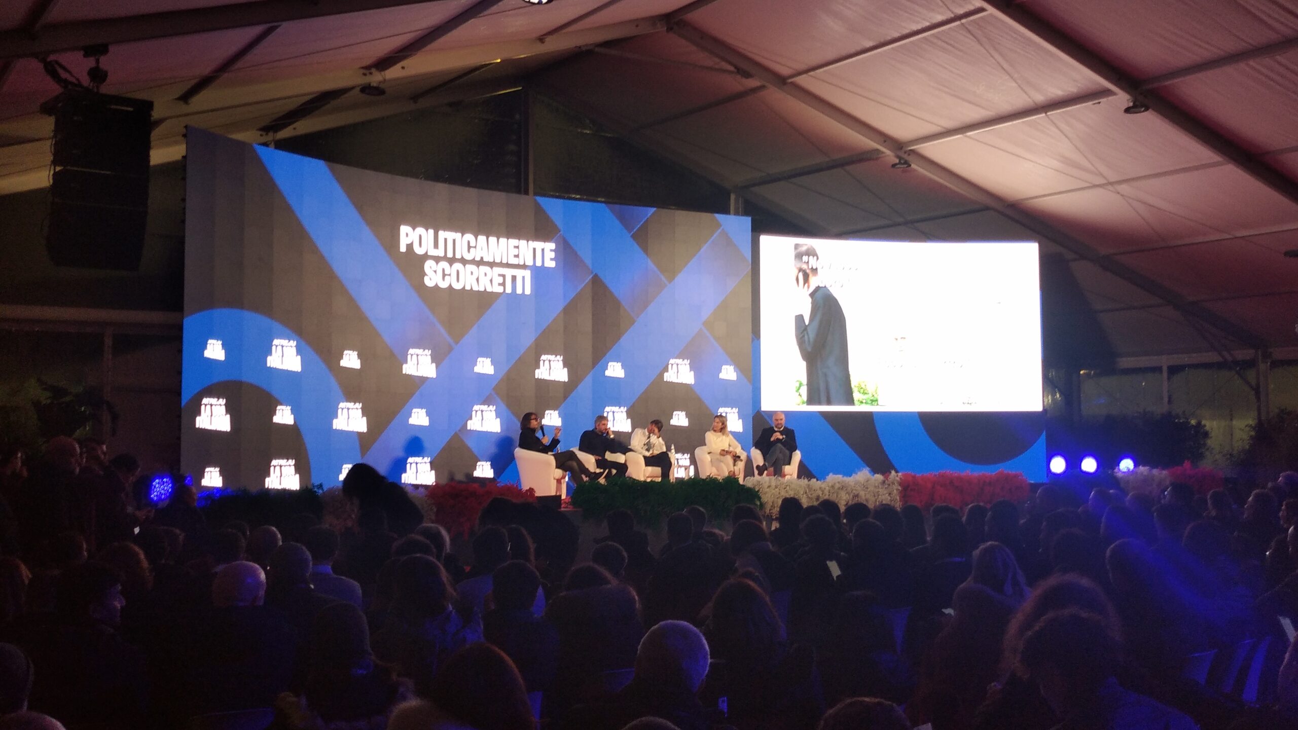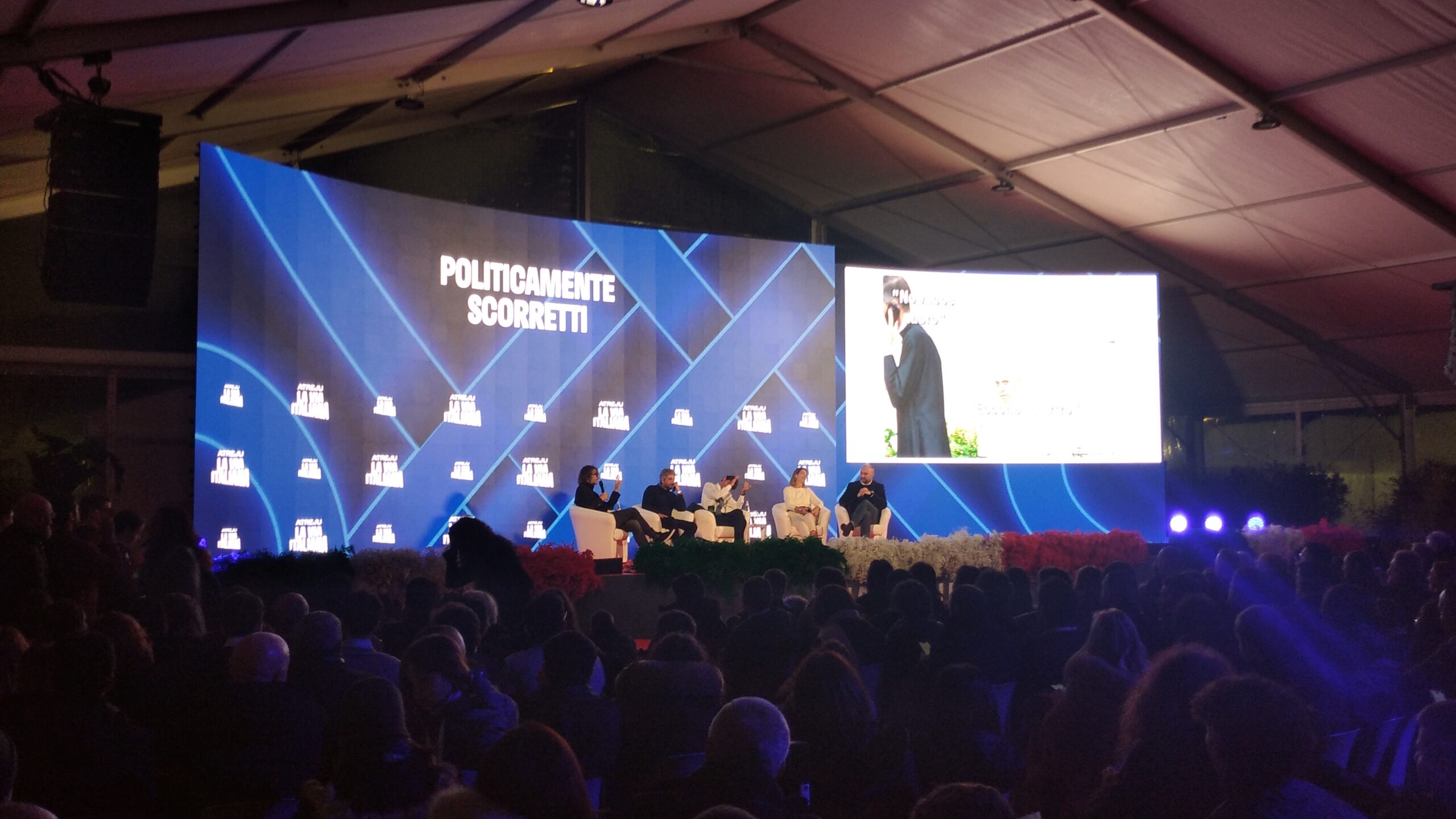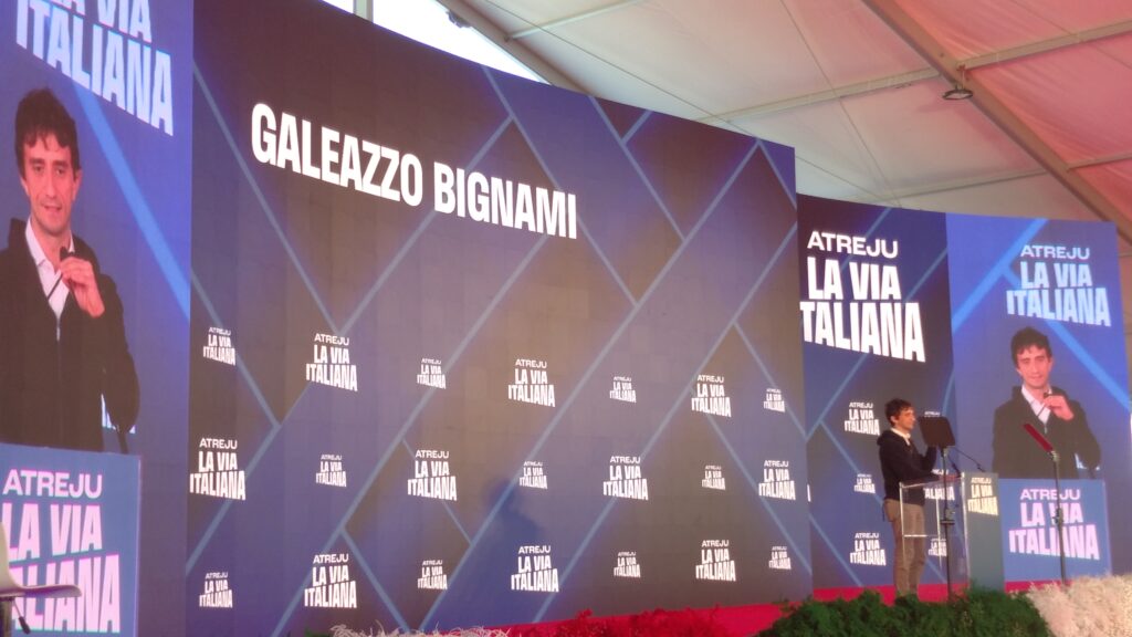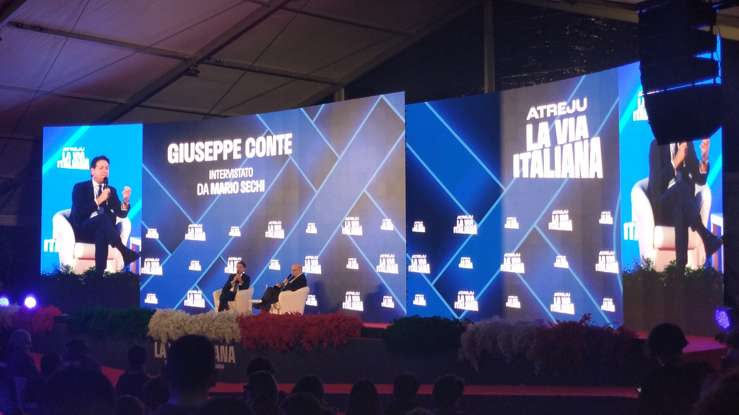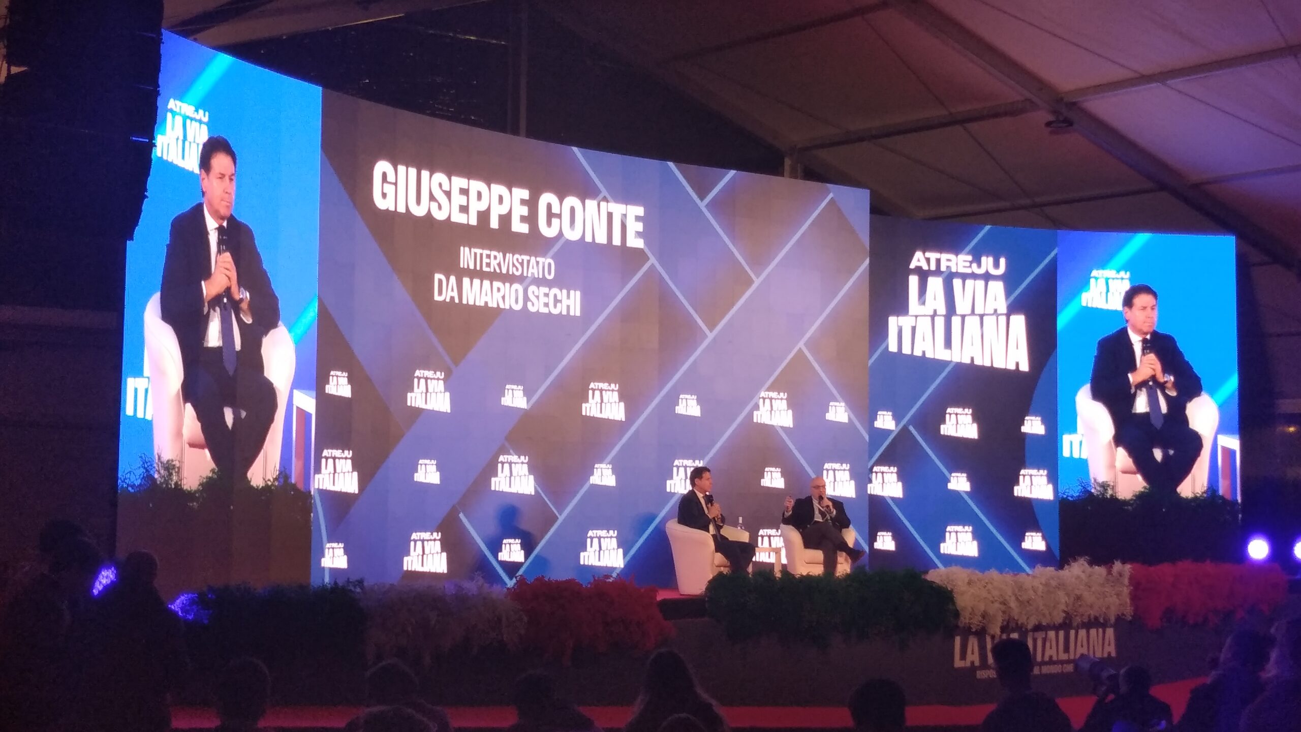 Mentre Saverio Tommasi, provocatore di “Fanpage”, è gironzolante per Atreju a “caccia di fascisti” ed ha lasciato una piacevole impressione l’impatto imprevisto con Denny Andreína Méndez de La Rosa, famosa come Denny Mendez (attrice ed ex modella dominicana, Miss Italia 1996, la prima al top del concorso nazionale di bellezza d’origine non italiana), Mario Sechi (direttore responsabile di “Libero”), in Sala “Cristoforo Colombo”, se l’è vista con Giuseppe Conte, ex presidente del Consiglio ed oggi deputato e presidente del Movimento Cinque Stelle. L’introduzione è stata di Emanuele Prisco (deputato di Fratelli d’Italia, sottosegretario al ministero dell’Interno). Lo scambio domande-risposte ha scardinato una certa ipocrisia da arrampicata sugli specchi del presunto “avvocato del popolo”, sballata definizione celebrativa ormai finita alle ortiche…