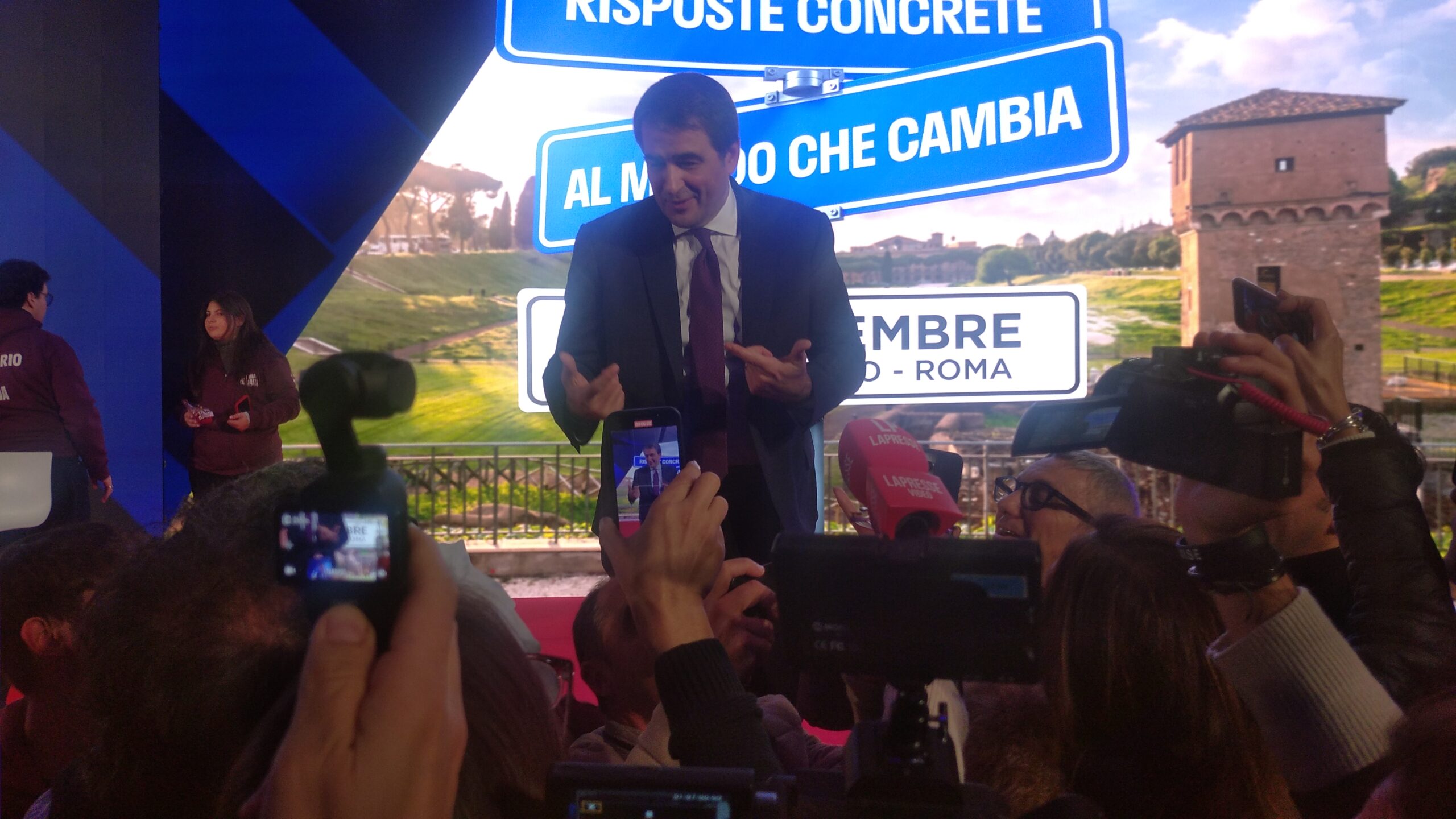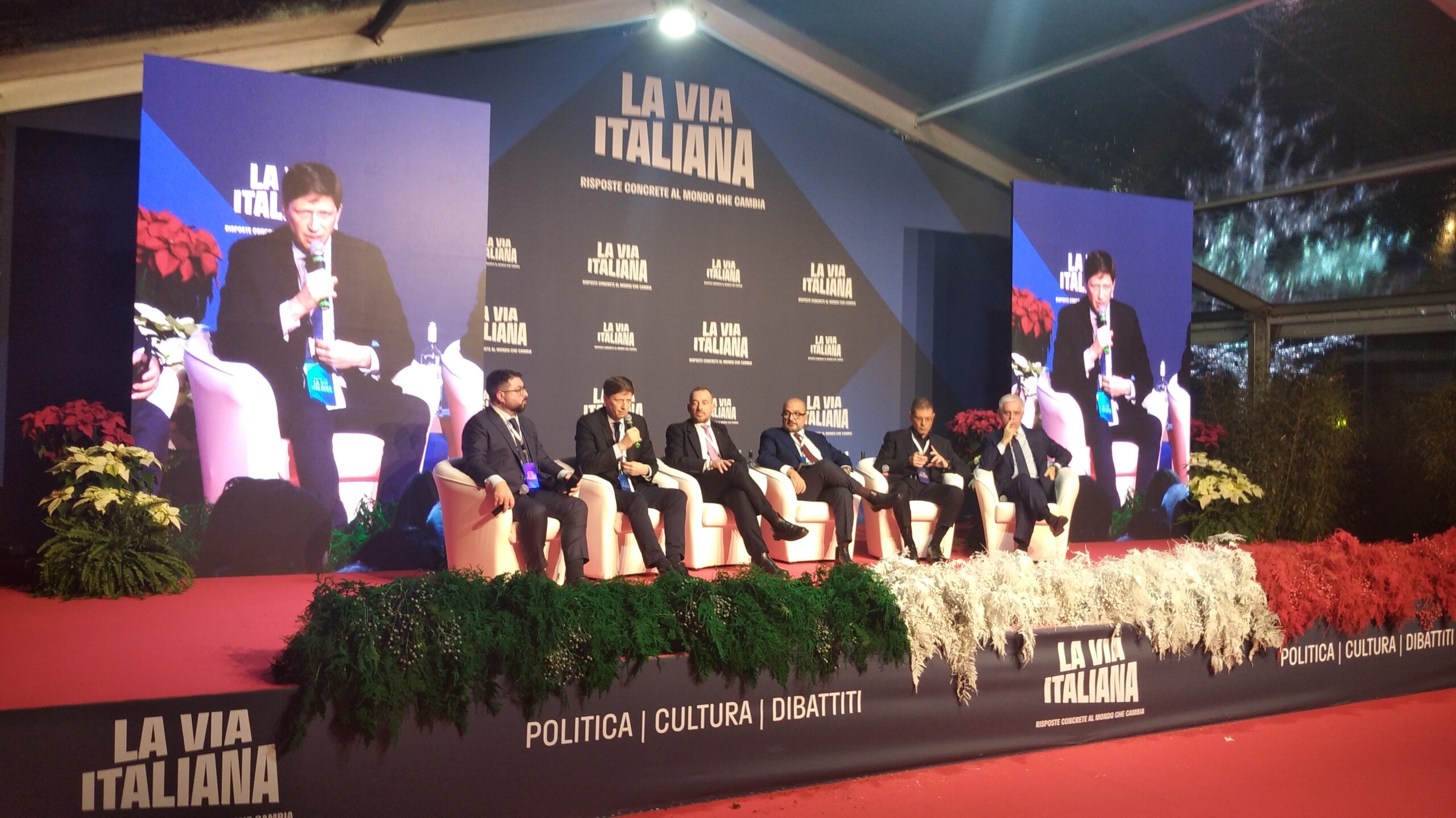 La Sala “Marco Polo” ha assistito all’alternarsi di interventi su “Il nuovo Occidente. Le prospettive dei rapporti transatlantici dopo la rielezione di Donald Trump”. Con i commenti di Francesco Filini (deputato di Fratelli d’Italia e responsabile del Dipartimento Programma), Gennaro Sangiuliano (ex ministro della Cultura, particolarmente applaudito nonostante le note vicende scandalistiche che gli hanno fatto decidere le dimissioni), Daniele Capezzone (direttore editoriale di “Libero”), Paolo Messa (fondatore di “Formiche”) ed Andrew Spannaus (giornalista ed analista politico). Hanno introdotto Stefano Maullu (deputato di Fratelli d’Italia) e moderato Ulderico de Laurentiis (direttore responsabile de “La voce del Patriota”).
