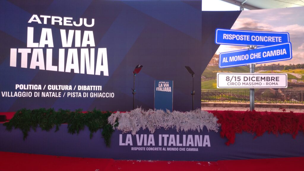 Roma, Circo Massimo – Atreju, kermesse regina di Fratelli d’Italia, s’è conclusa il 15 dicembre, dopo otto giorni dall’apertura, con numeri da far gonfiare il petto d’orgoglio: 50 mila presenze, 73 ore di dibattiti con 527 interventi, 415 volontari (del partito, di Gioventù Nazionale e d’Azione Universitaria) e più di mille giornalisti accreditati e da disparate provenienze internazionali.