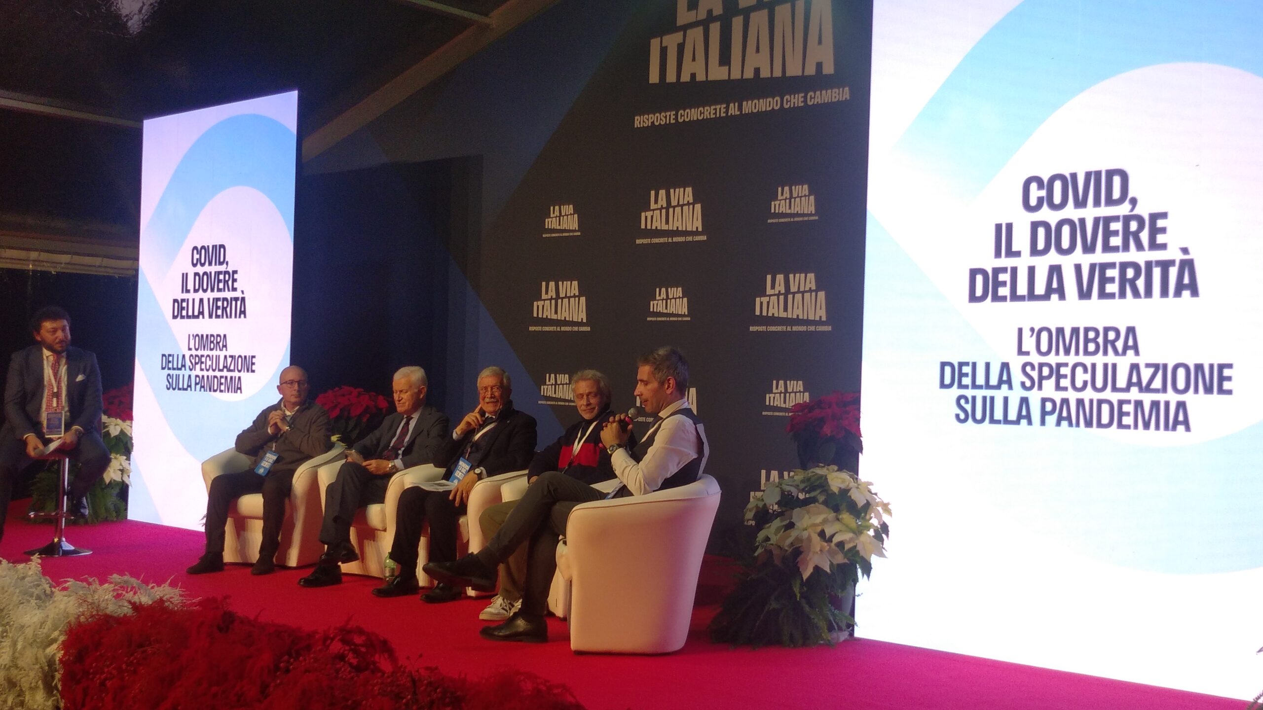In Sala “Marco Polo” s’è trattato un doloroso tema che pretende giustizia dal governo in carica in quei momenti critici: “Covid, il dovere della verità. L’ombra della speculazione sulla pandemia”. Hanno detto la loro, senza peli sulla lingua, Marco Lisei (senatore di Fratelli d’Italia e presidente della Commissione d’inchiesta sull’emergenza sanitaria epidemiologica da SARS-CoV-2), Maurizio Belpietro (direttore responsabile de “La Verità” e di “Panorama”), Dario Bianchi (Fondatore di “JC- Electronics”), Alberto Donzelli (professore e Consulente della Commissione precitata), Giovanni Frajese (professore associato di Endocrinologia e Medicina dello Sport presso l’Università del Foro Italico).