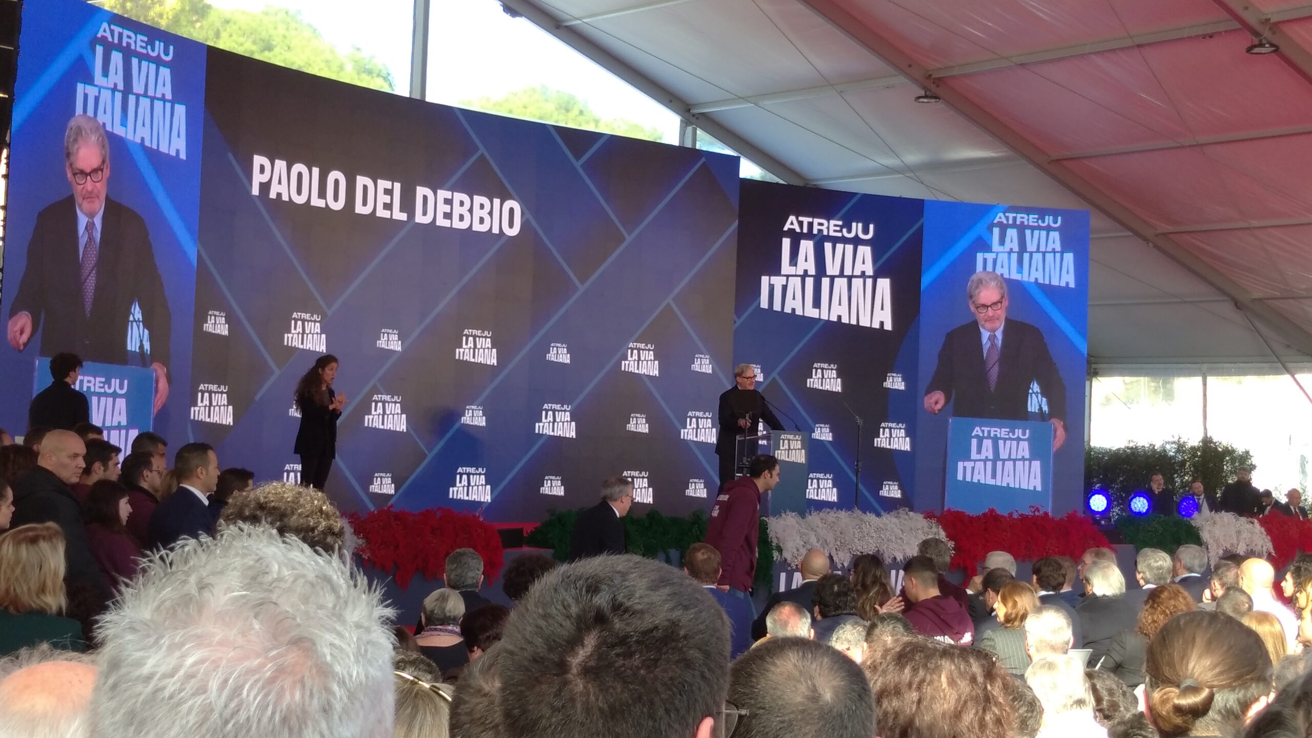 “Antipasto” all’intervento pepato, con susseguenti spazi ad illustri politici d’area, di Paolo Del Debbio, popolare giornalista, saggista, autore e conduttore televisivo, docente universitario e deus ex machina di “Dritto e rovescio” su Rete4.