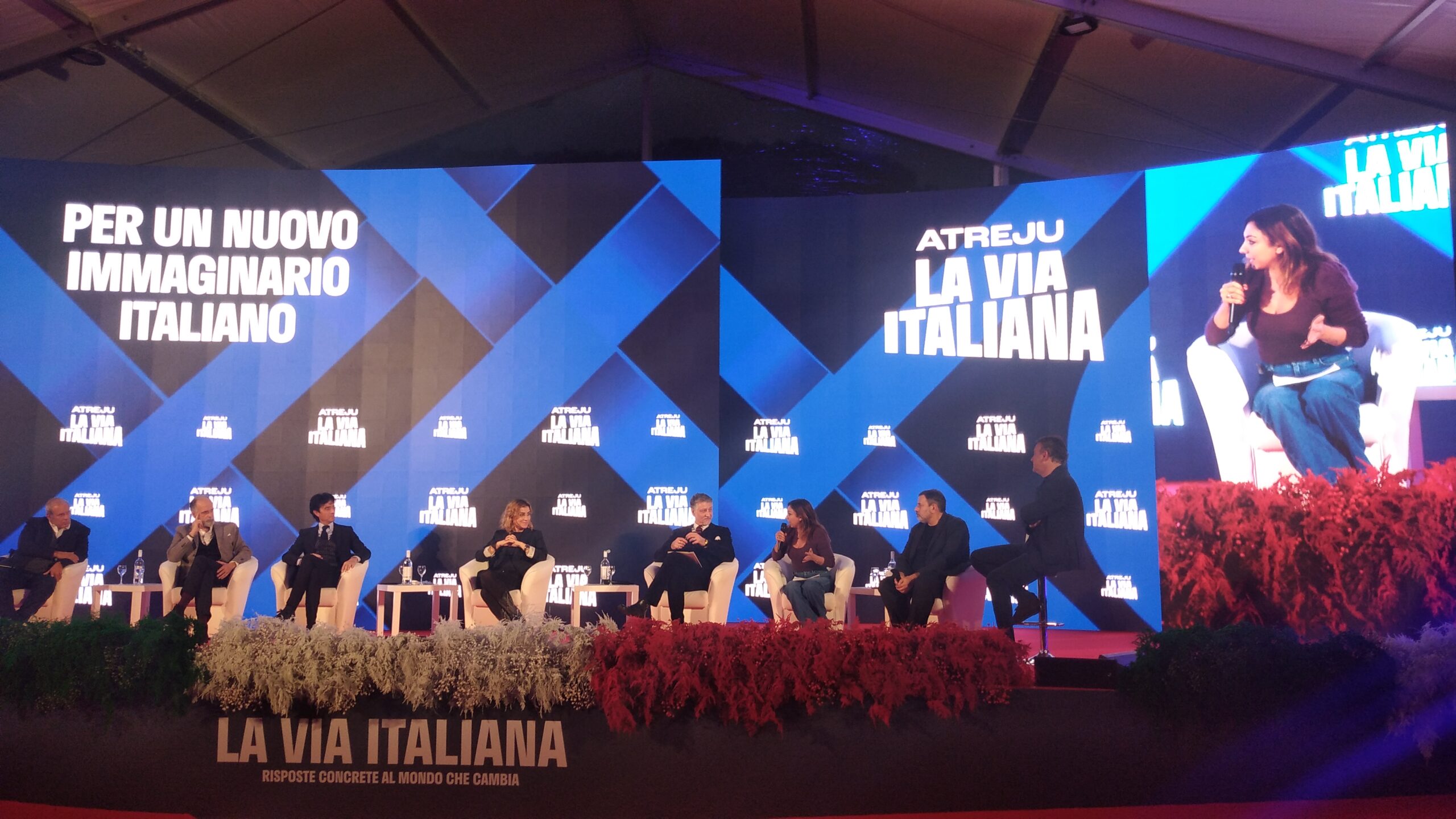 Sono intervenuti Alessandro Giuli (neo ministro della Cultura), Augusta Montaruli (vicepresidente della Commissione Vigilanza Rai), Giulio Base (attore e regista), Manuela Cacciamani (amministratore delegato di Cinecittà), Federico Moccia (regista e scrittore) e Giampaolo Rossi (amministratore delegato Rai). L’incontro è stato condotto dal giornalista Andrea Ruggieri.