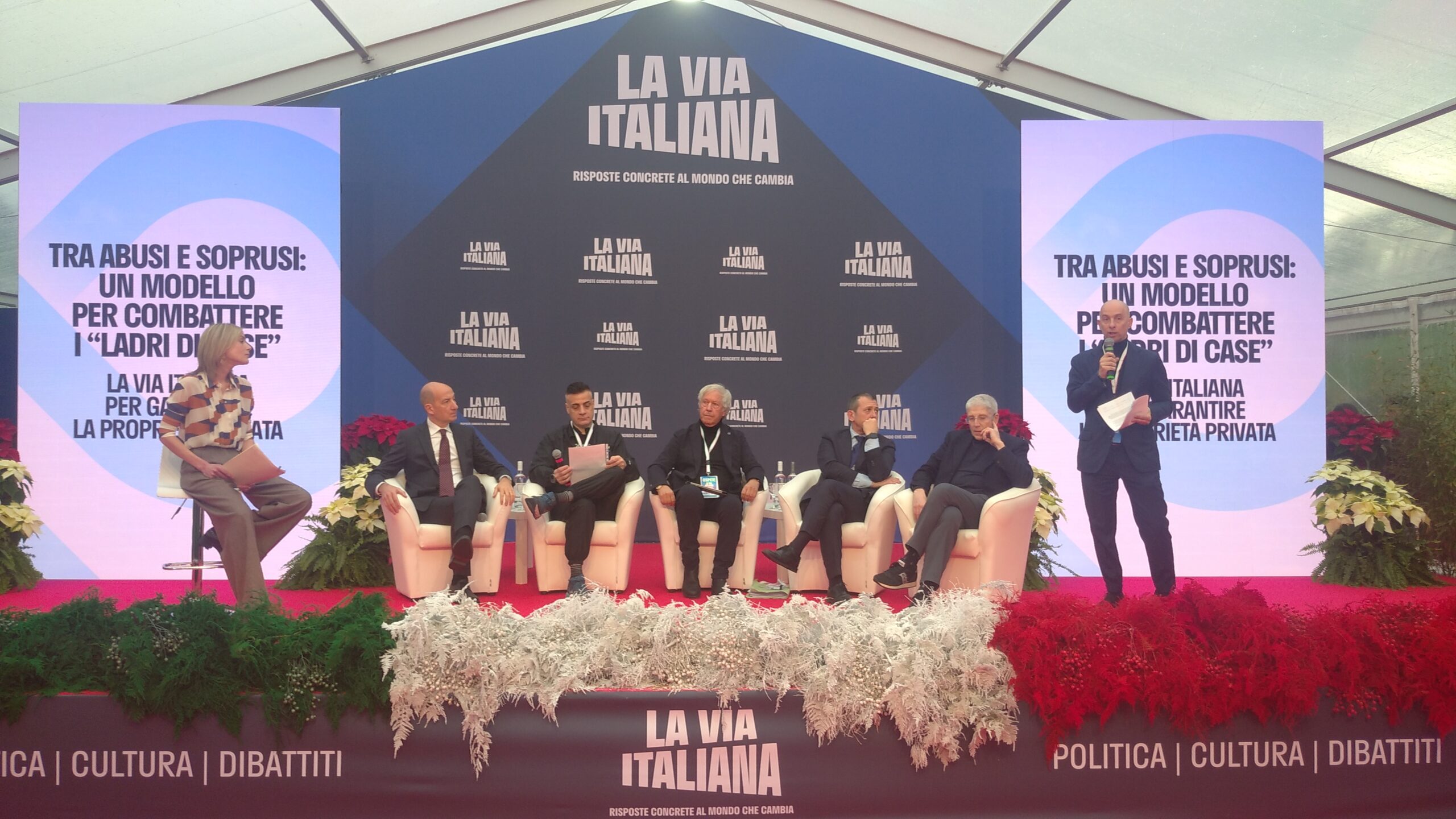 In Sala “Marco Polo” s’è tenuto l’incontro “Tra abusi e soprusi: un modello per combattere i ladri di case. La via italiana per garantire la proprietà privata”. Ha introdotto il veronese Ciro Maschio (deputato e presidente della 2ª Commissione Giustizia della Camera dei deputati), con gli interventi di Andrea Delmastro Delle Vedove (sottosegretario al ministero della Giustizia), l’ormai “esperto del ramo” Mario Giordano (giornalista che tratta da tempo lo spinoso argomento a “Fuori dal coro”), Fabio Pucci (presidente dell’UPPI, Unione Piccoli Proprietari Immobiliari), Simone Ruzzi (youtuber noto con lo pseudonimo di Cicalone) e Giorgio Spaziani Testa (presidente di Confedilizia).