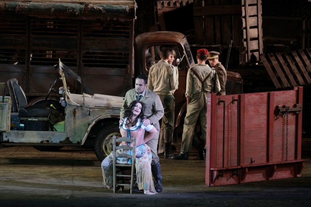 La vicenda della seducente sigaraia che mette in crisi il brigadiere José è originalmente riletta dal regista, scenografo e costumista argentino. De Ana infatti spoglia la visione tradizionale dell’opera per portarla in una realistica e cinematografica Spagna degli anni Trenta: l’indipendenza della protagonista, che affascina e spaventa allo stesso tempo, si muove sullo sfondo dell’irrequieta Repubblica spagnola del primo Novecento, che cederà alle forze del Franchismo. Il culmine della tensione drammatica ha luogo in una vera e propria plaza de toros, ricreata sin dall’inizio sul grande palcoscenico dell’Arena di Verona, punto di partenza e di arrivo della storia.