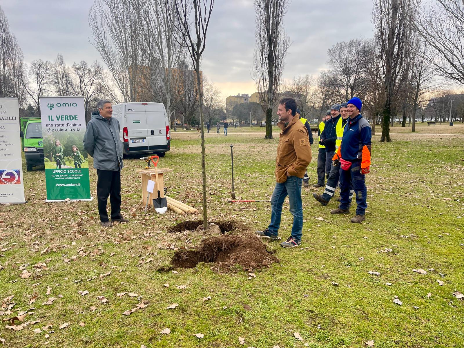 “Solo quest’anno il Comune di Verona ha in programma circa 1000 nuove piantumazioni – ha spiegato l’assessore Federico Benini –. Verso il verde cittadini c’è infatti un impegno costante, che punta a coinvolgere quando è possibile i più giovani con iniziative che riguardano direttamente le scuole, come è avvenuto con il Liceo Galilei vicina al grande parco urbano San Giacomo oggi interessato dalla messa a dimora di una nuova pianta”.