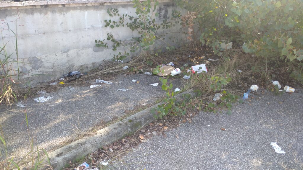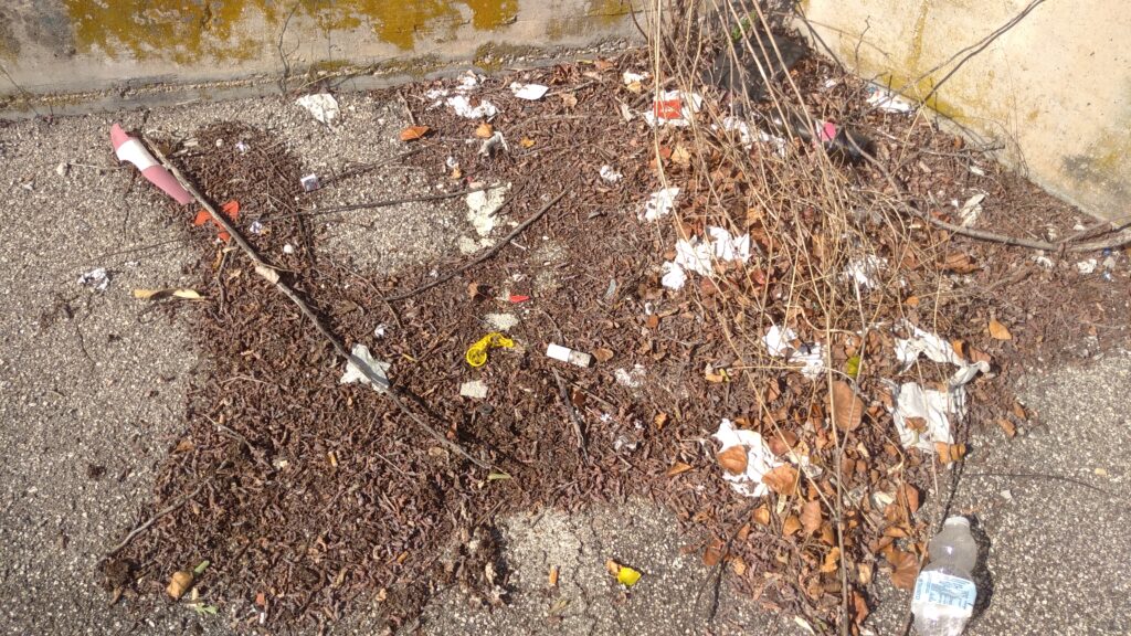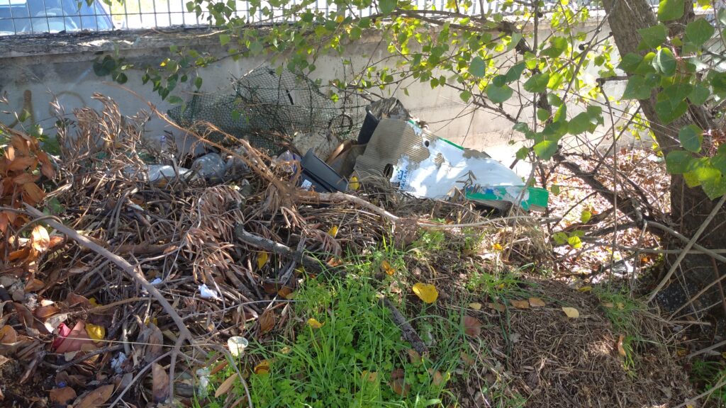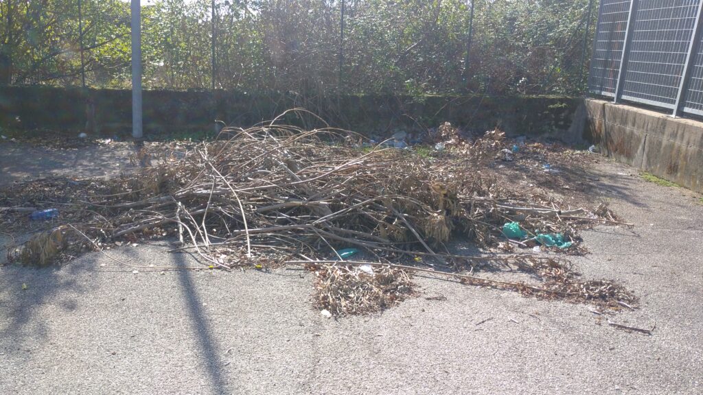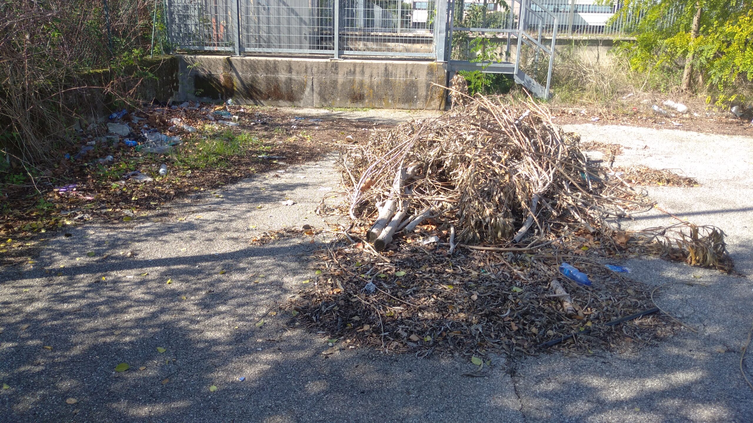 L’ampio spazio sulla seconda arteria, ad esempio, mostra ancora lo sfacciato persistere di rifiuti e ciarpami vari (alcuni quantitativi “misteriosi” avvolti anche in sacchi di plastica) oltre a cumuli di arbusti tagliati od abbandonati lì chissà quando.