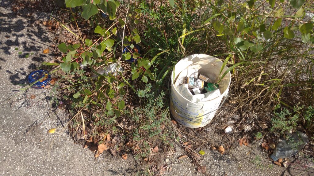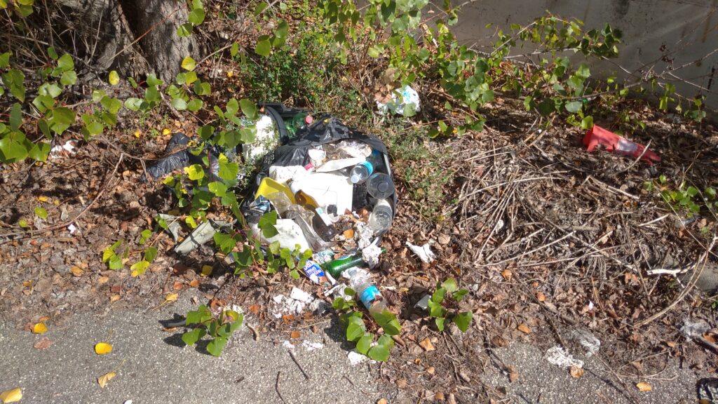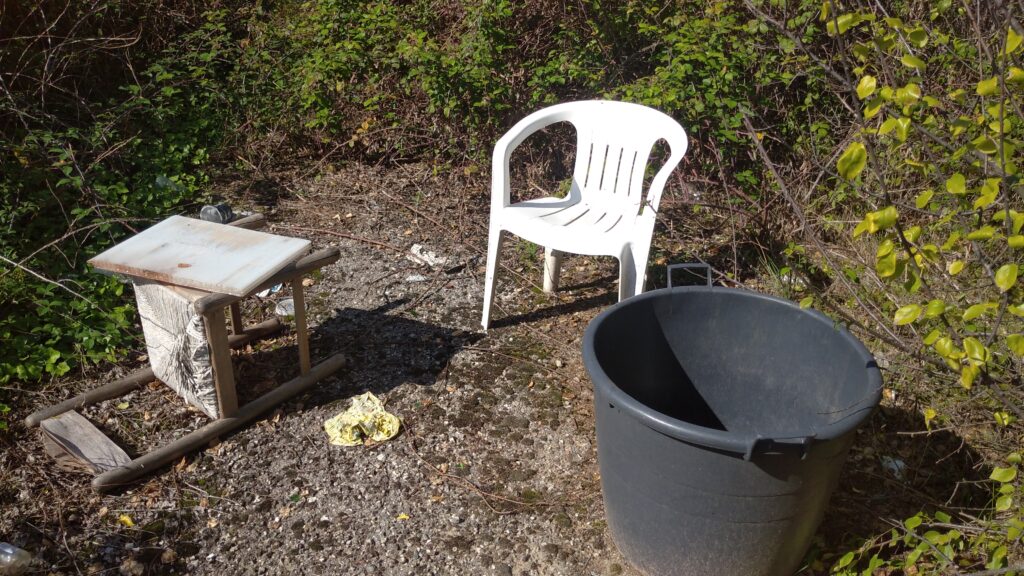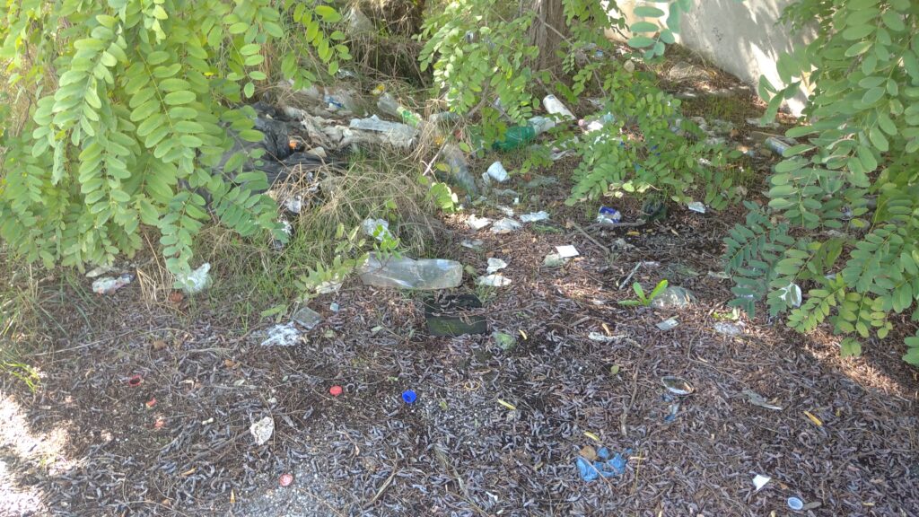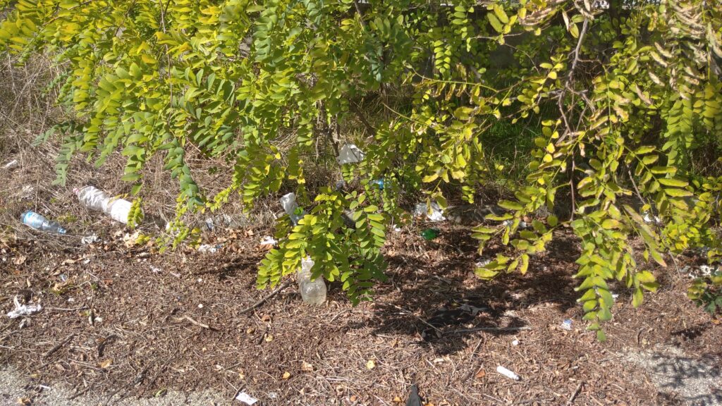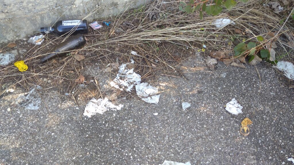 L’ampio spazio sulla seconda arteria, ad esempio, mostra ancora lo sfacciato persistere di rifiuti e ciarpami vari (alcuni quantitativi “misteriosi” avvolti anche in sacchi di plastica) oltre a cumuli di arbusti tagliati od abbandonati lì chissà quando.