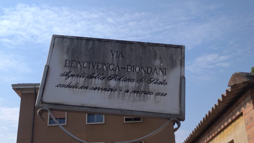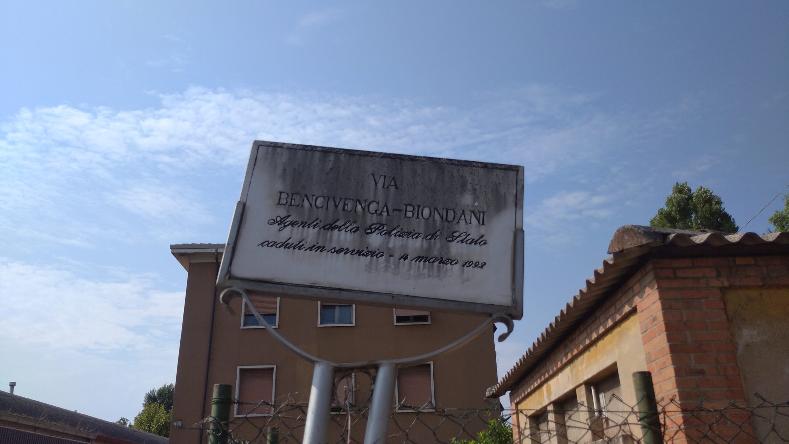 E sempre al loro sacrificio ha avuto intestazione via Bencivenga-Biondani, laterale di lungadige Galtarossa, a poca distanza dalla stessa Questura. Dove, all’inizio della strada, a destra, la relativa targa viaria recita: “Via Bencivenga-Biondani Agenti della Polizia di Stato caduti in servizio – 14 marzo 1992”.