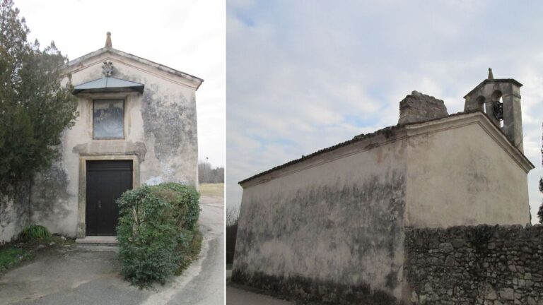 Il vialetto d’accesso all’edificio sacro, ben curato, fa però a pugni con il pessimo stato dell’affresco sull’ingresso (dove s’intravede a malapena una Madonna col Bambino) che pare aver perso, ormai, possibilità residue di restauro. Anche lo stemma sopra versa in cattive condizioni come pure le mura della facciata.