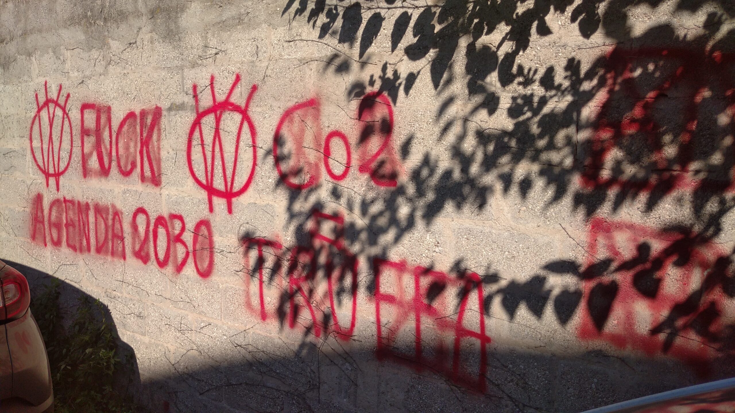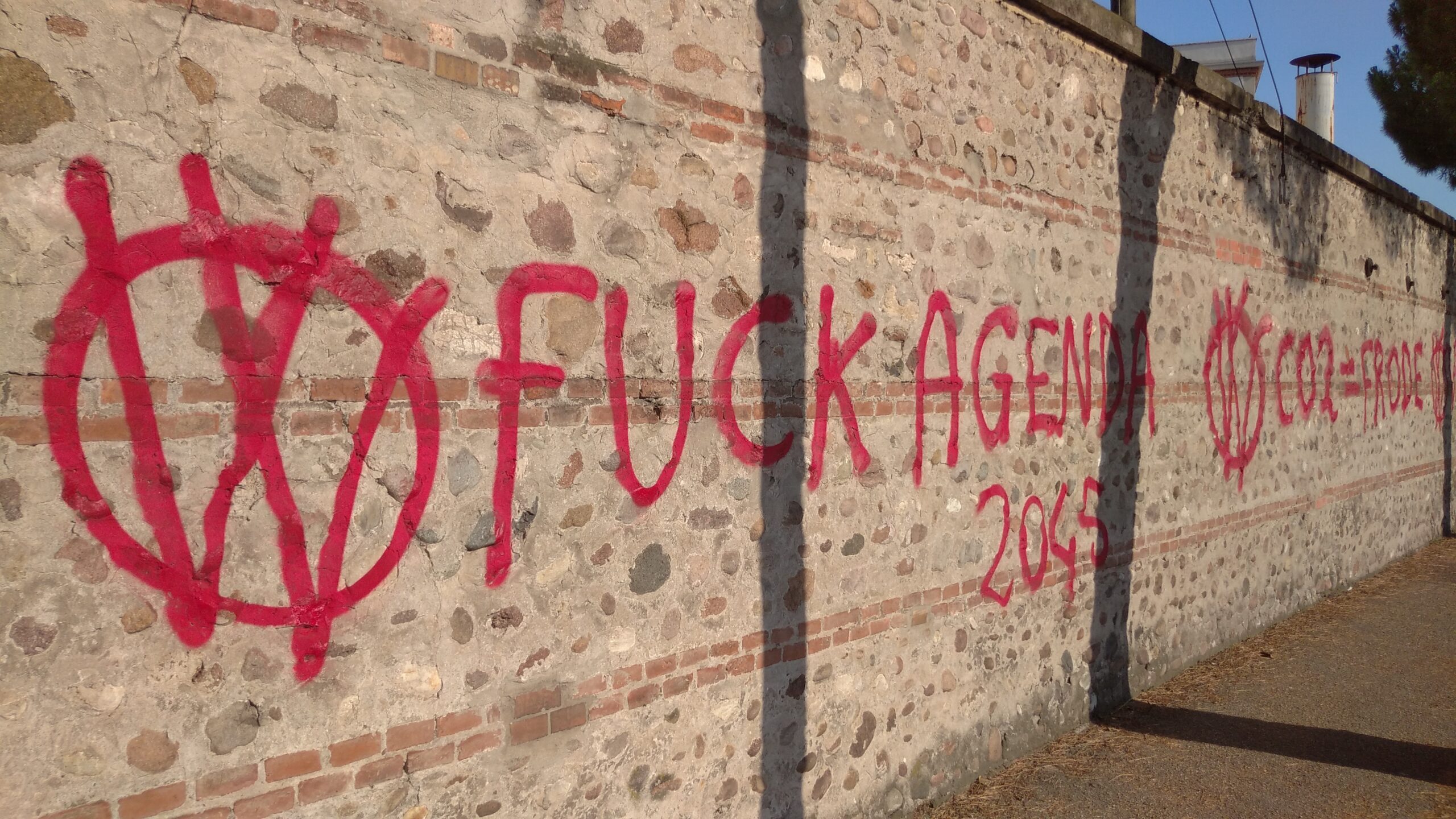 Sono state coinvolte nell’isteria di dissenso ribelle (che non vuole darsi pace o scendere a compromessi) pareti di edifici in viale dell’Artigianato, presso la Casa d’accoglienza “Il Samaritano” ed in via Olanda, quasi di fronte alla sede dell’Hellas Verona Football Club. Scritte e scritte di forsennata protesta ormai fuori tempo massimo…