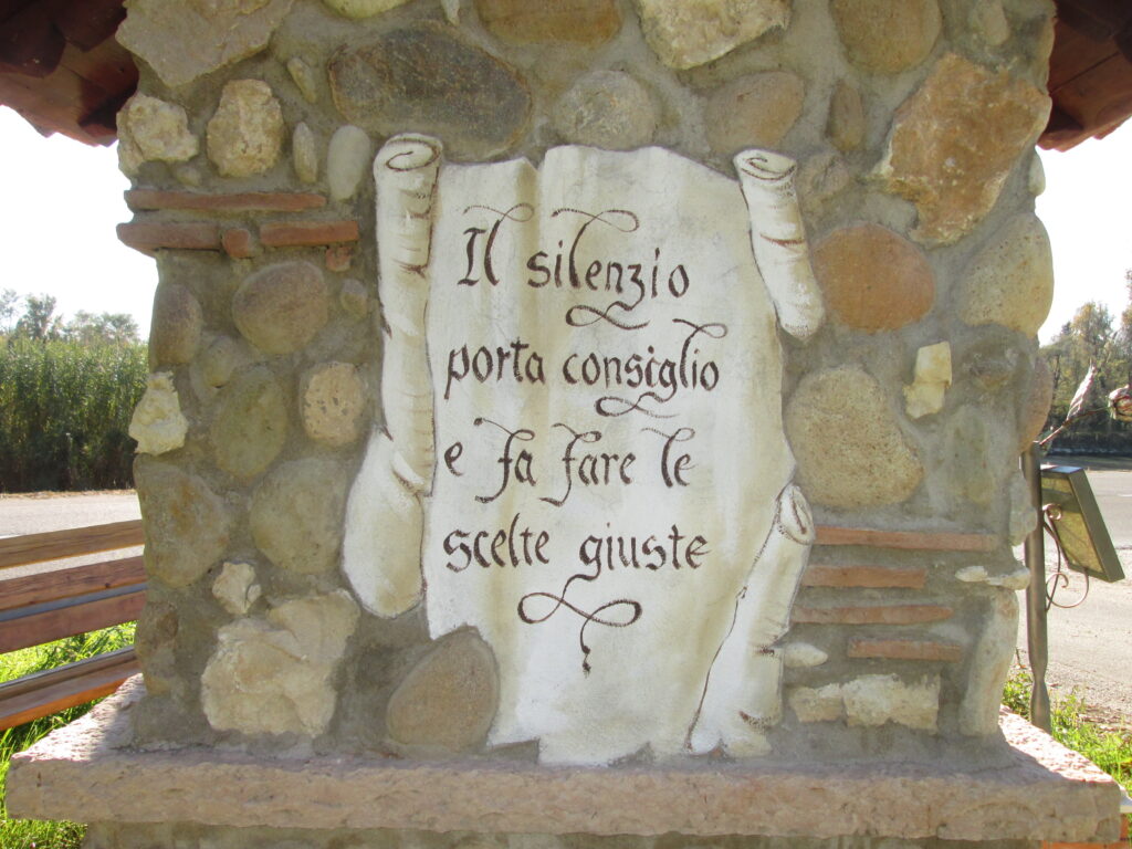 Nel retro è posta una “regola morale” artisticamente realizzata: “Il silenzio porta consiglio e fa fare le scelte giuste”.
