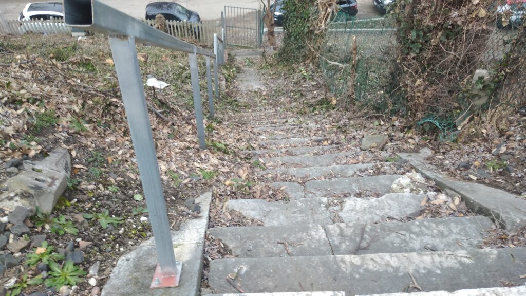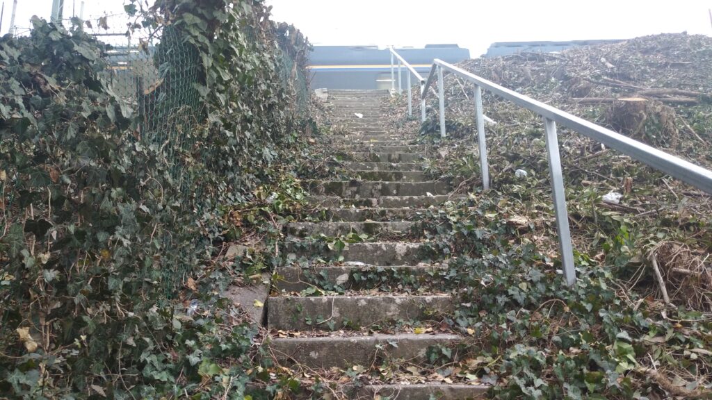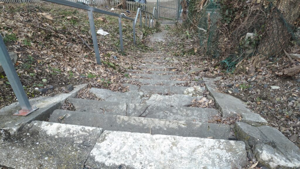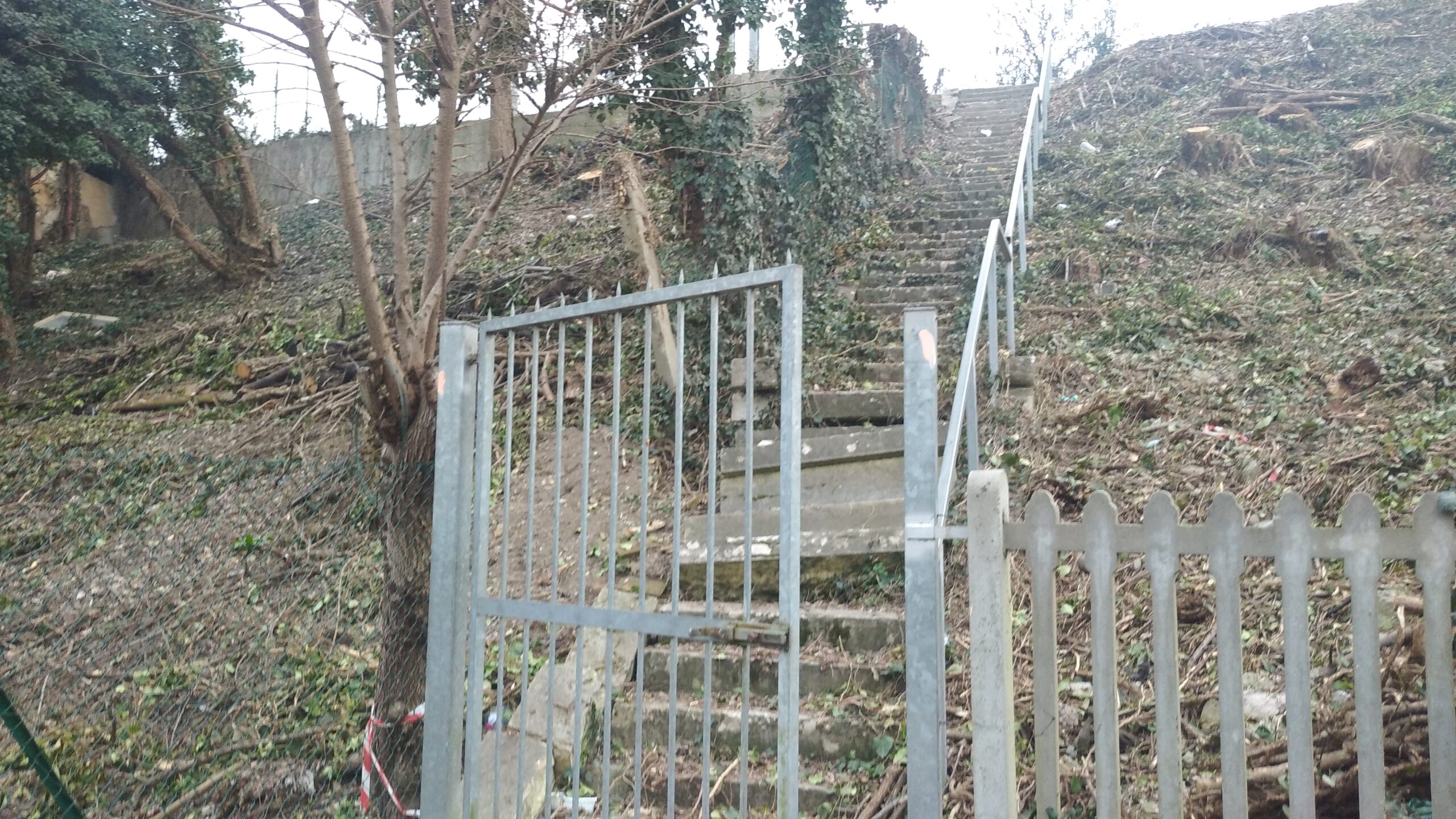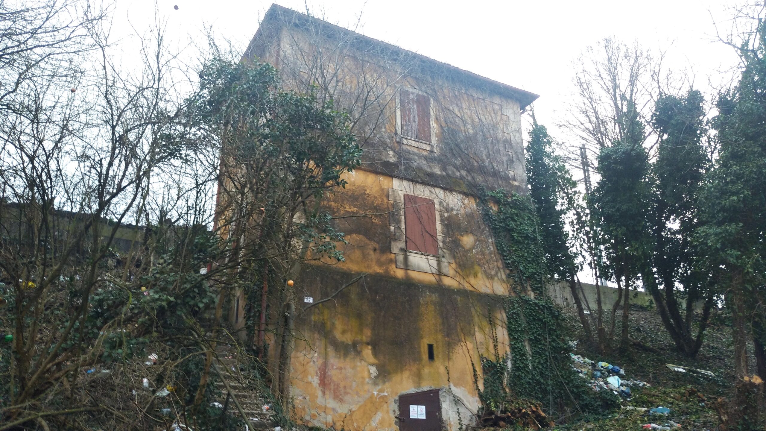Su tutto grava, dall’alto, un casello (o casa cantoniera) ferroviario, raggiungibile entrando da un cancelletto accostato (non chiuso con serratura o catena) e tramite una scalinata impervia e dissestata, con tanto di corrimano. Una seconda serie di gradini con infisso d’appoggio è presente all’altro lato dell’edificio ma in basso il relativo accesso risulta bloccato.