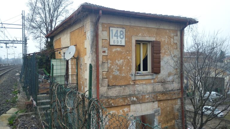 Se fuori le condizioni sono così vergognose, chissà come sarà mai l’interno del casello ferroviario ormai in disuso dalla sua vecchia funzione d’alloggio o di presenza turnificata di personale (casellante) responsabile del controllo e della manutenzione di tratti di linea, soprattutto nei pressi di ponti, passaggi a livello e bivi. Oltre ad essere stato abbandonato al suo decadente destino, senza “santi protettori” conservativi, il “testimone” di tempi ferroviari andati ha oggi a che fare con intrusi, vandali ed inquinatori… Involuzione?