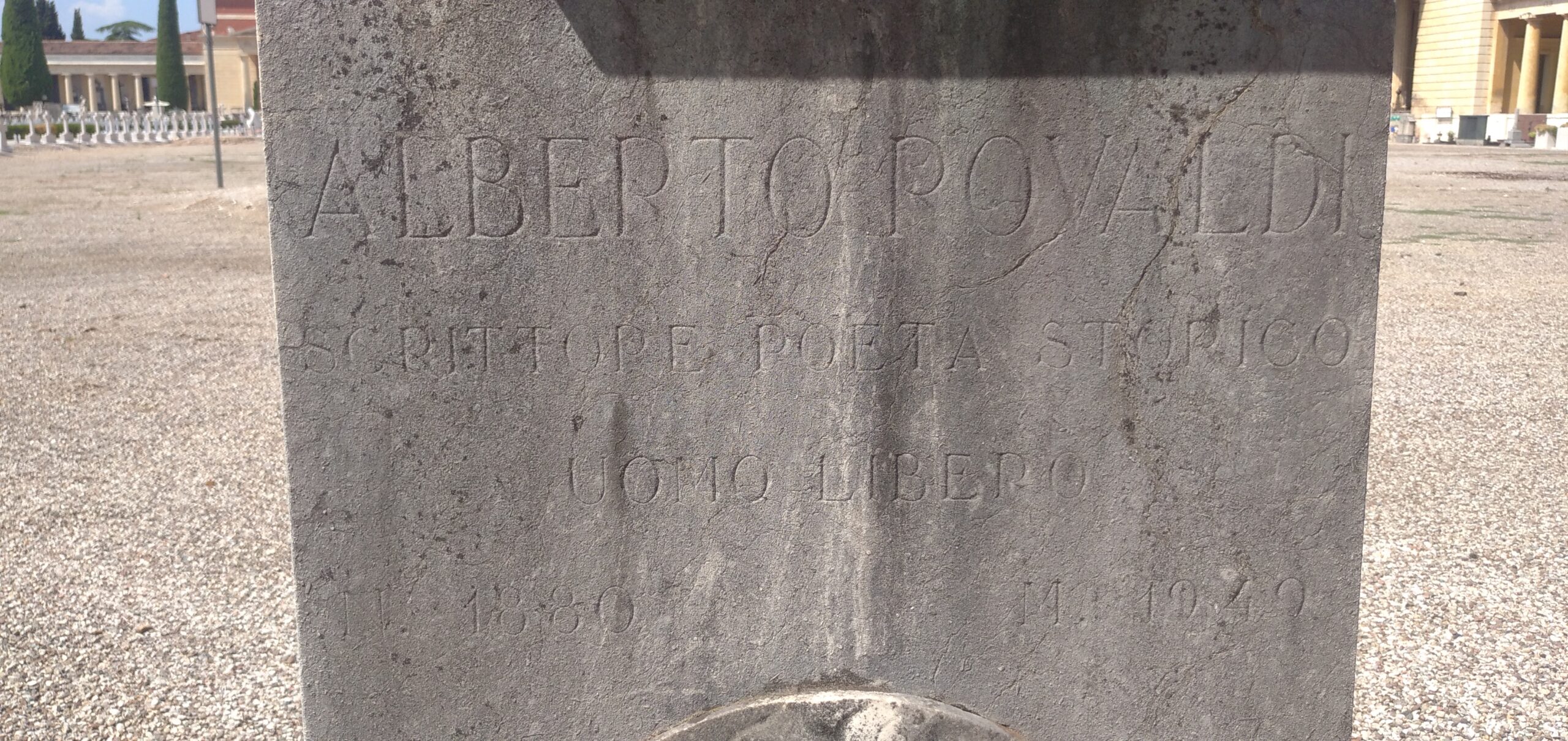 Nato nel 1880 e deceduto il 2 novembre 1949, Rovaldi riposa, dimenticato dai più, nell’inaridita tomba di famiglia nel Cimitero monumentale (Zona M – Barbieri, Manufatto T. F. – Terragna – n. 0173), dove un busto lo raffigura sovrastando la stele sepolcrale in cui è sintetizzato in parche parole ciò che fu (“scrittore poeta storico / uomo libero”). Un altorilievo sotto ritrae la sua supposta consorte che l’affianca nell’ultima dimora (“In vita e in morte”).