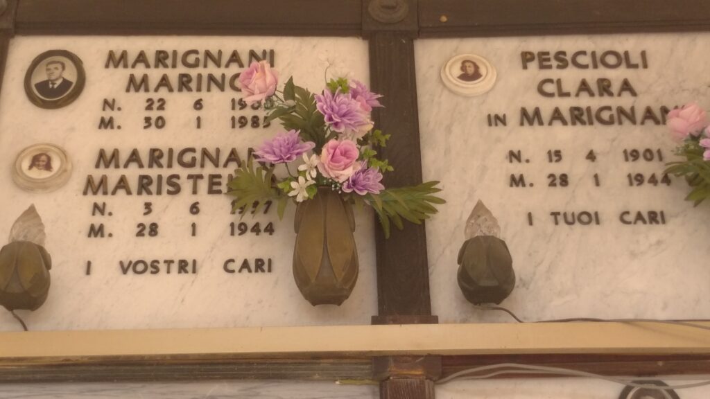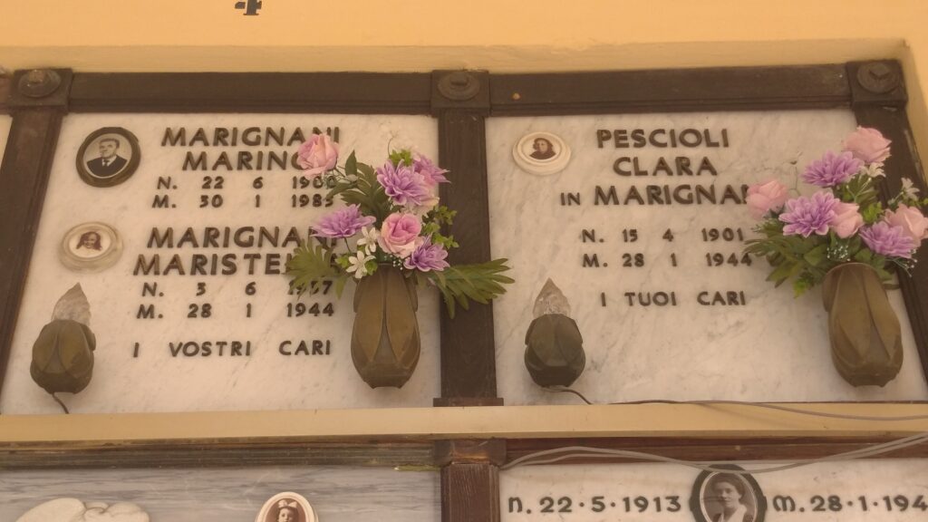 Clara Pescioli e la piccola Maristella Marignani (madre e figlia) furono purtroppo estratte senza vita assieme ad altri. I loro loculi, vicini, col marito e padre Marino (sopravvissuto e deceduto il 30 gennaio 1985) sono nel cimitero di Santa Lucia, dove la Quarta Circoscrizione, come sempre nell’amara ricorrenza, s’è raccolta con cordoglio in memoria degli scomparsi in quel sciagurato 28 gennaio 1945…